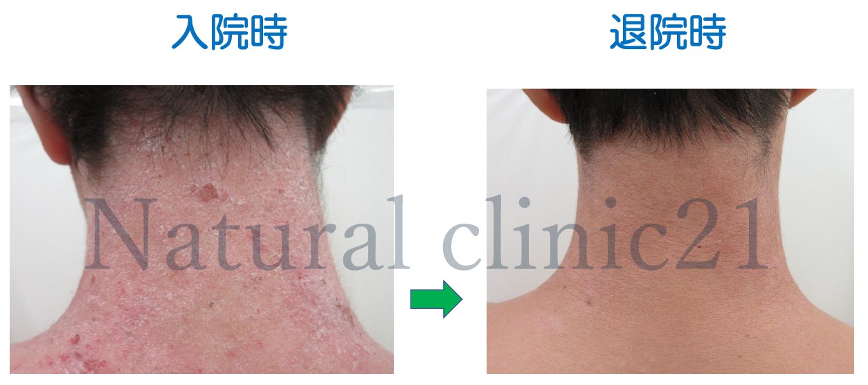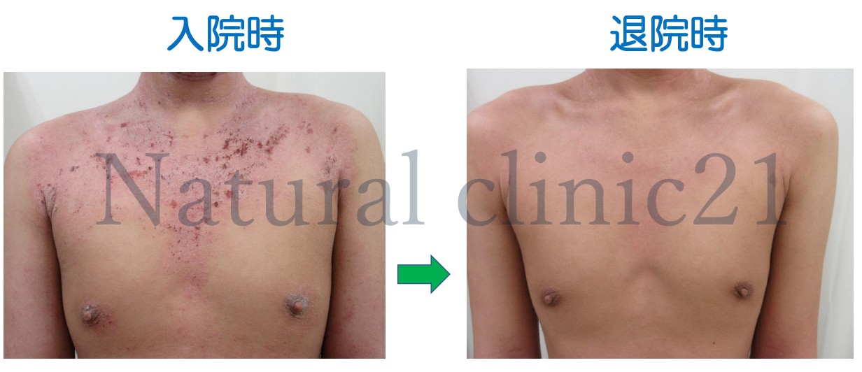 入院から約2.5ヶ月、高校の補講が始まるタイミングで退院となりましたが、まだ多少の赤みや痒みなどは残っていることから、自宅でバイオ入浴を続けながら体調管理を心がけるようにと助言しました。