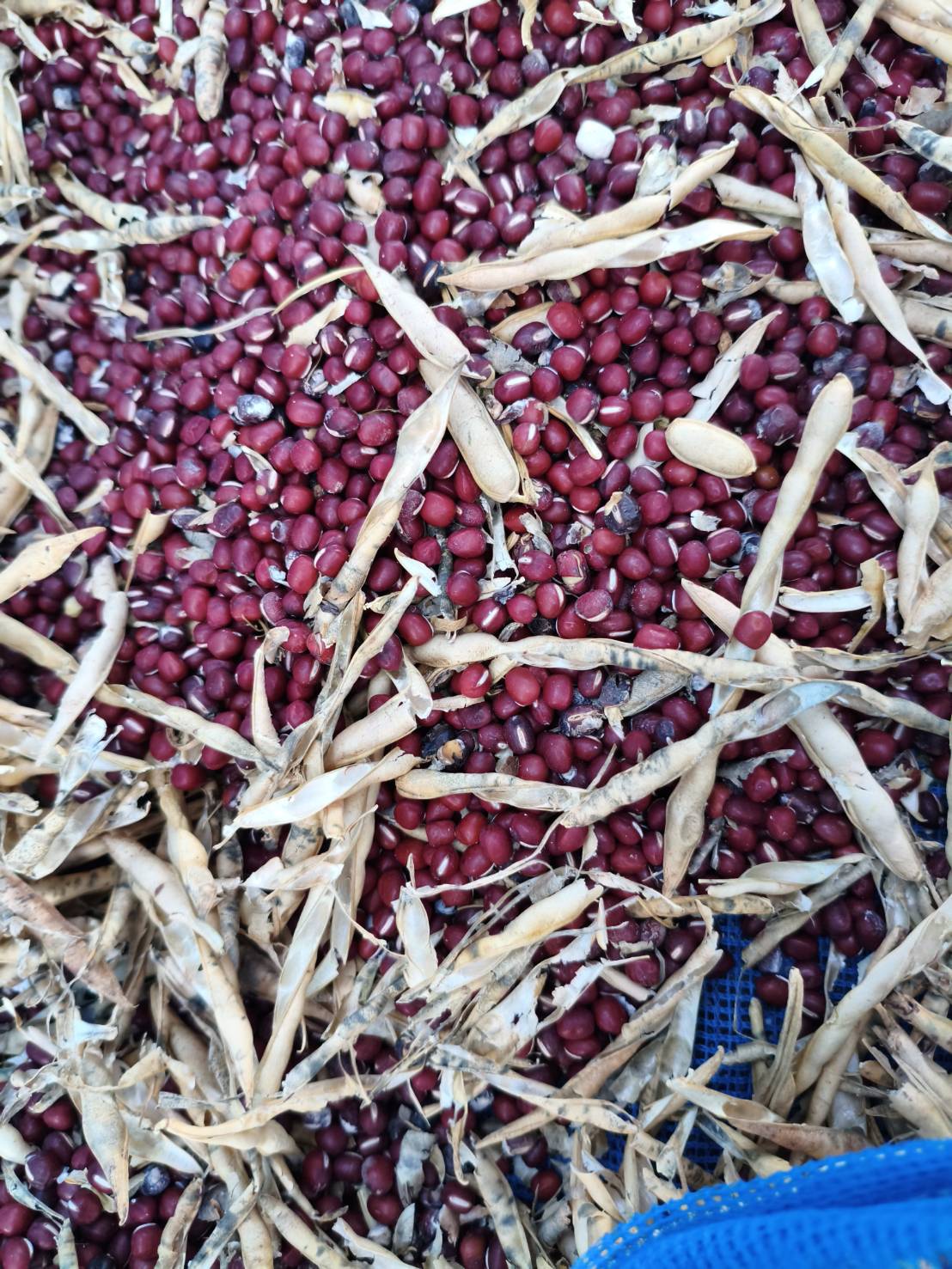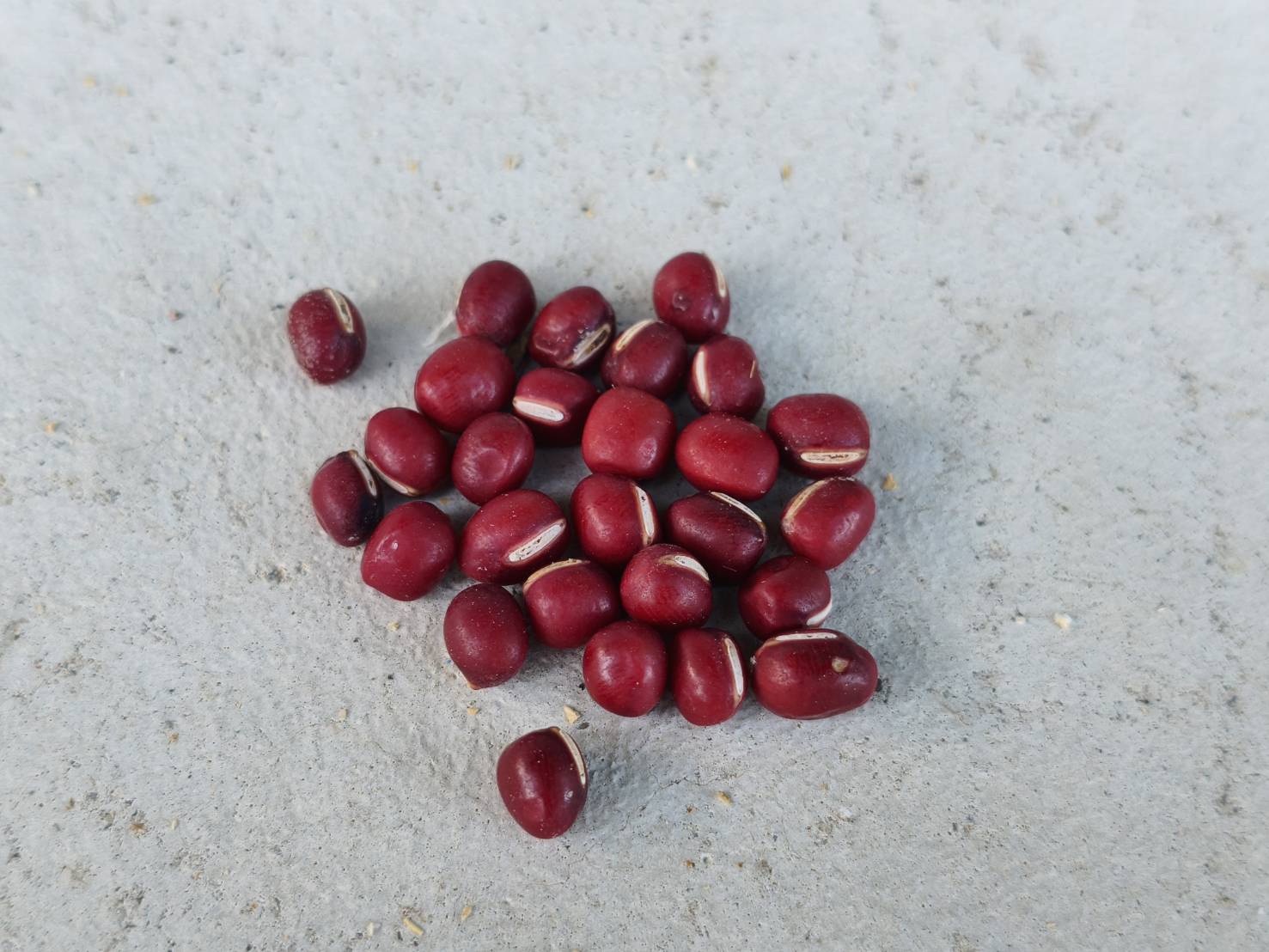 乾燥したあずきを鞘ごと叩いたり踏んで脱穀